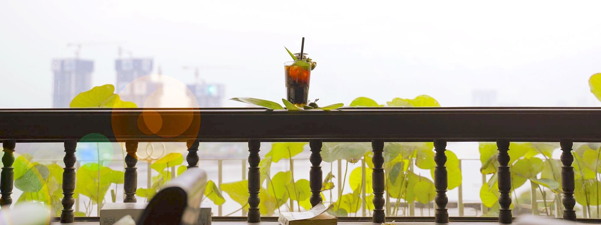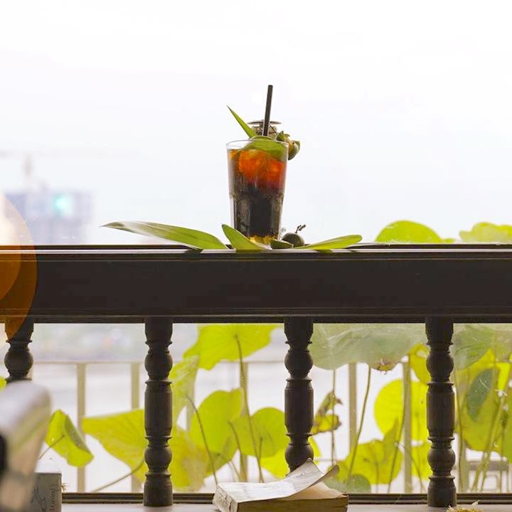 Điều tôi hứng thú nhất là quán sở hữu vị trí tầng thượng với view bao quát toàn cảnh sông Sài Gòn. Cũng vì lẽ đó, tôi chọn ngồi góc ban công để tận hưởng không gian tươi xanh và thoáng đãng ngoài trời.