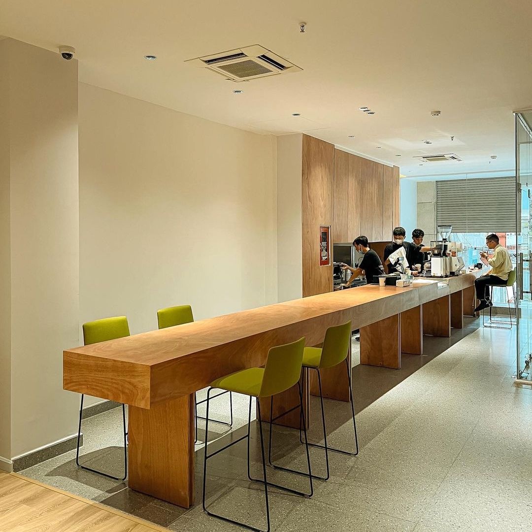 - Diện tích hạn chế, sức chứa khoảng 15-20 người cùng một thời điểm. Ngoài bàn dài với kiểu ghế cao để chill hay trò chuyện nhóm, bạn có thể chọn bàn đơn lẻ cho nhu cầu làm việc riêng tư.