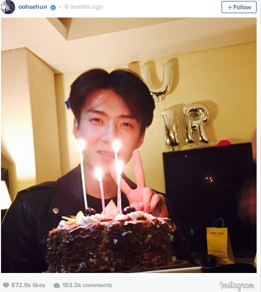 "Em út" EXO có hơn 4,5 triệu người theo dõi và khép lại danh sách này. Tấm ảnh mà Se Hun đăng trong ngày sinh nhật của mình 6 tháng trước nhận được gần 900.000 like và hơn 153.000 comment.