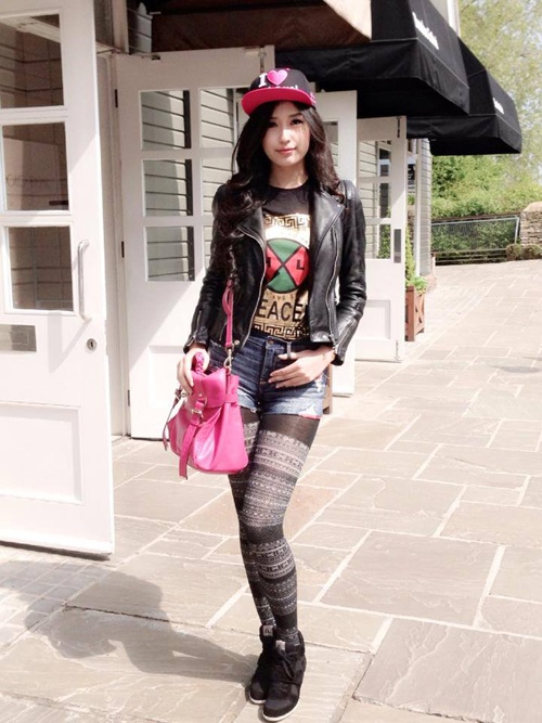 Đời thường, cô cũng ăn mặc "trẻ" và "lúa" quá đà, với nhiều món item cùng đua nhau khoe sắc trên cùng một bộ trang phục.