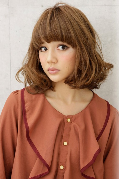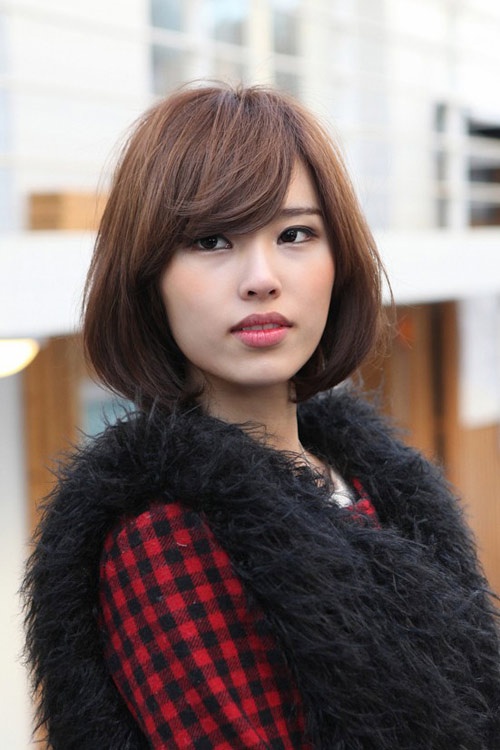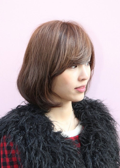Nếu tóc bạn ngắn, lại còn bị gãy đuôi tóc thì bạn nên cắt tóc ngang vai sau đó uốn cụp đuôi tóc. Nếu tóc quá yếu để ép cụp đuôi thì bạn có thể sấy cụp phồng cũng rất đẹp. Mái tóc này hợp với hầu hết các khuôn mặt, trừ mặt quá dài.
