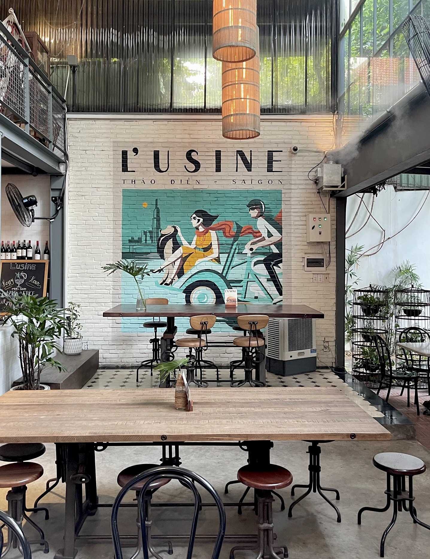 - Nhà hàng sở hữu chi nhánh ở nhiều vị trí đắc địa. Tại TP Thủ Đức, bạn có thể ghé trải nghiệm tại Thảo Điền. Không gian lấy cảm hứng từ một nhà xưởng mang đậm chất industrial, đem đến trải nghiệm mới mẻ. Nơi đây sở hữu trần nhà cao, không gian mở, nội thất gỗ chủ đạo. Điểm nhấn là tranh vẽ tường đặc trưng.