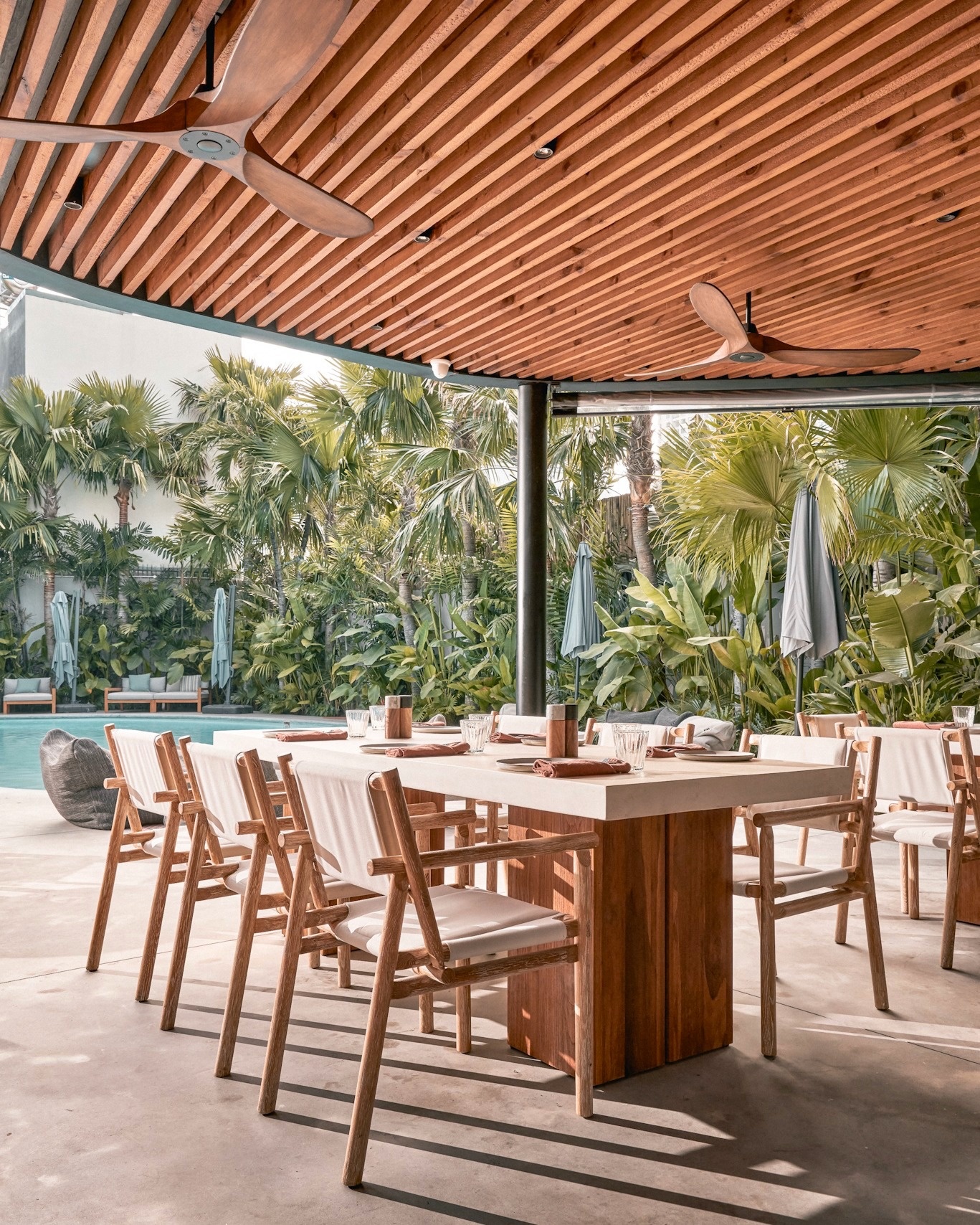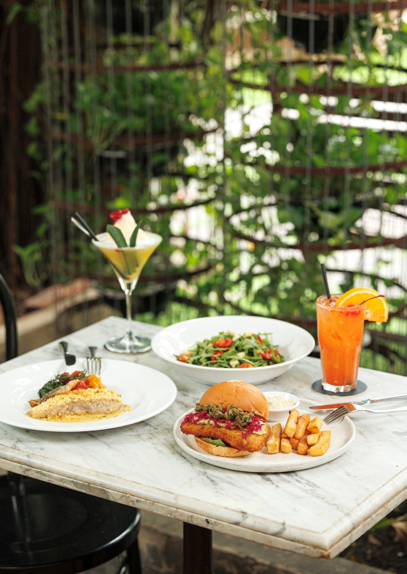 - Địa điểm được bao phủ bởi những hàng cây xanh mát. Bầu không khí thoáng với khu vực thưởng thức ẩm thực ngoài trời và trong nhà. 11-15h mỗi thứ bảy và chủ nhật, thực khách cũng có cơ hội tận hưởng bữa brunch bên hồ bơi.
