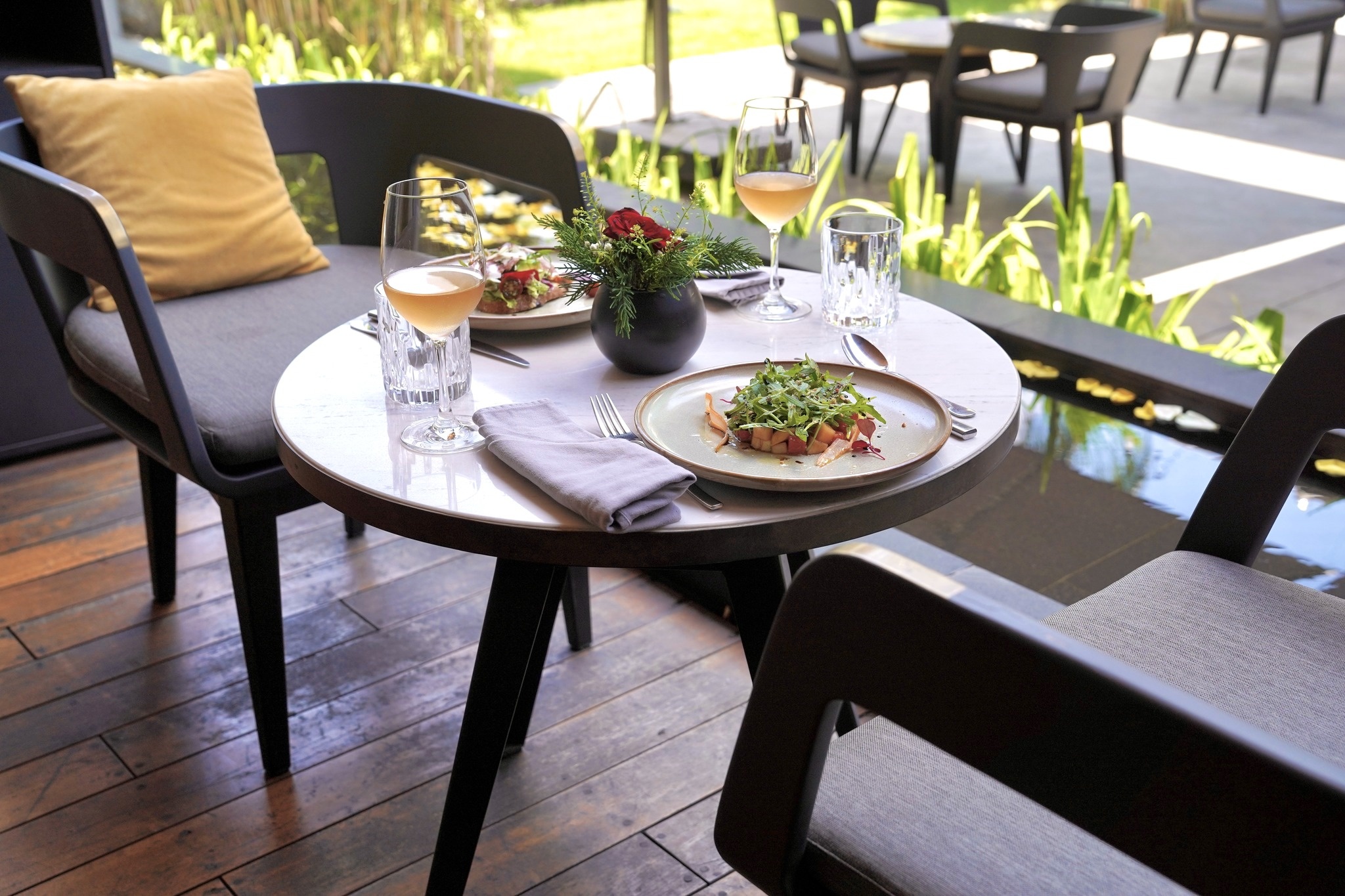 - Bầu không khí thanh lịch, âm nhạc nhẹ nhàng. Nhiều chỗ ngồi riêng tư cho cá nhân, cặp đôi và phù hợp với buổi gặp gỡ nhóm, gia đình. Khách có thể dùng bữa ở trong nhà, ngoài trời và cạnh khu vực bể bơi.