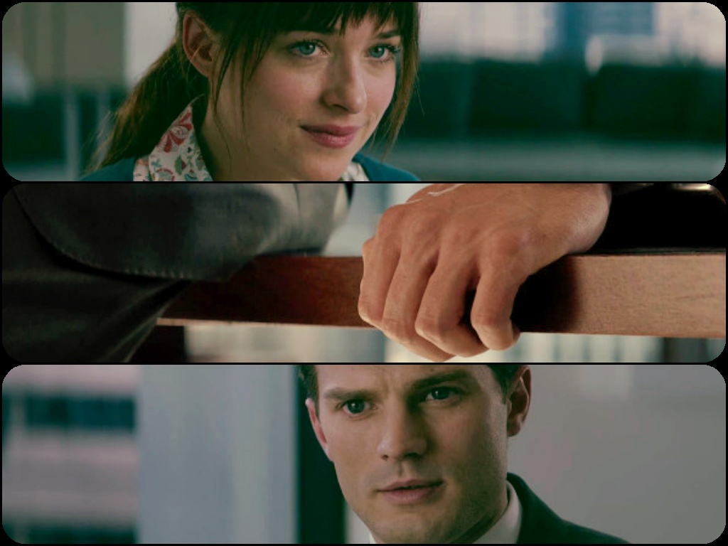 Đoạn trailer xoáy sâu vào cuộc gặp gỡ đầu tiên giữa Anastasia với Christian Grey, khi cô gái ghé thăm văn phòng của anh chàng tỷ phú để thực hiện cuộc phỏng vấn cho tờ báo tại trường đại học. Đây là cũng là lúc Christian Grey bắt đầu bị thu hút bởi cô sinh viên trẻ. “Thế còn em? Anh muốn được biết nhiều hơn về em”, Grey hỏi. “Em chẳng có gì nhiều để khám phá đâu, nhìn em mà xem”, Anastasia trả lời. Nhưng câu trả lời đầy gợi cảm “Anh thực sự muốn biết đấy” của Grey ngay sau đó chính là sự khởi đầu cho tất cả mọi chuyện.