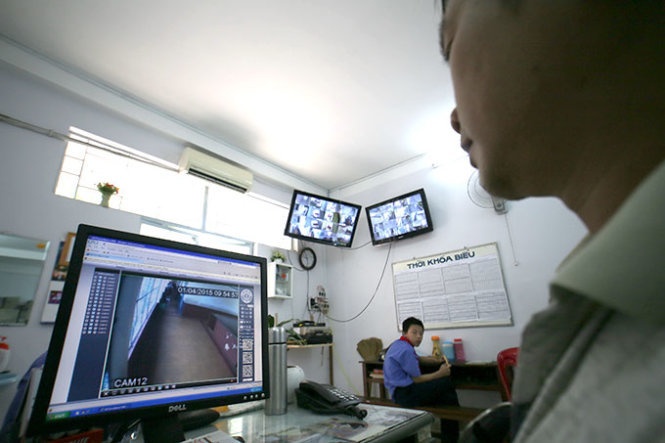 Giám thị quan sát camera ghi hình các góc khuất tại một trường học ở TP HCM. Ảnh: Tuổi Trẻ.  |
