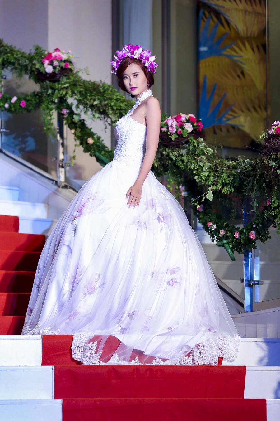 | Bộ sưu tập Gọi giấc mơ hoa lấy nguồn cảm hứng từ màu sắc của các loài hoa. NTK đặc tả ở từng chi tiết nhỏ để tạo nên sự sống động của từng cánh hoa lung linh. |