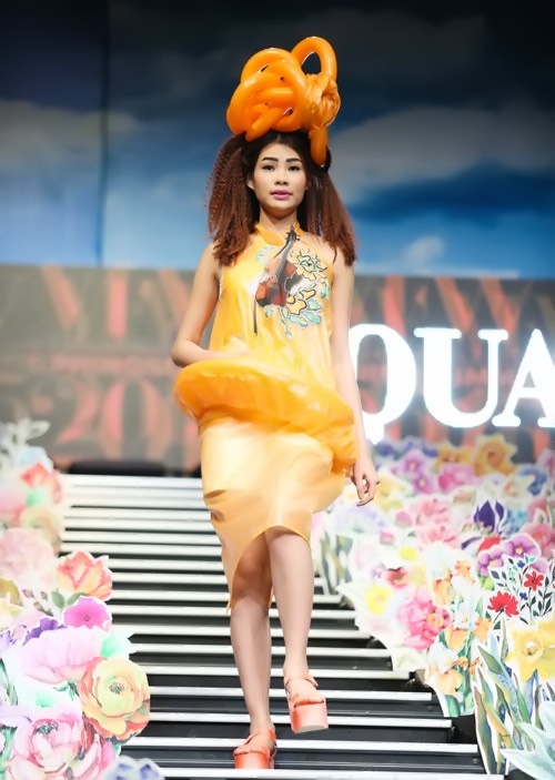 | Mẫu thiết kế haute couture của Quang Nhật bị chê bai là thàm hoạ khi trình diễn ở Tuần lễ thời trang Việt Nam. |