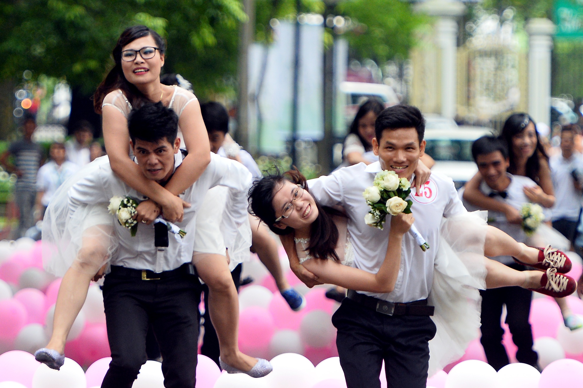 Nằm trong khuôn khổ Triển lãm Cưới & Du lịch Trăng mật lần thứ 7 sắp diễn ra vào nửa cuối tháng 8, 50 cặp cô dâu, chú rể sẽ cõng và dắt tay nhau chạy vượt chướng ngại vật trong chương trình Marathon - Tình yêu và Thử thách 2015.