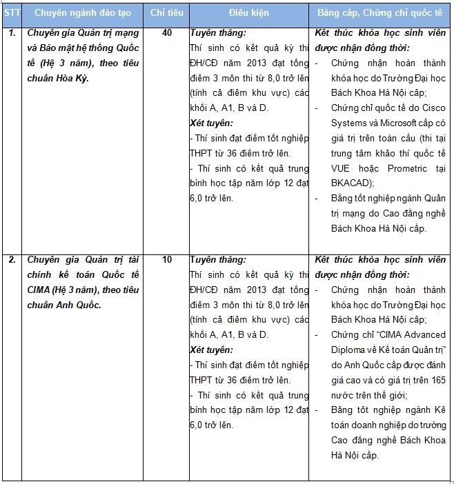 • Sau khi tốt nghiệp hệ CĐN, sinh viên đủ điều kiện sẽ được thi liên thông lên bậc đại học của Trường đại học Bách Khoa Hà Nội và các trường đại học có tuyển sinh liên thông trên cả nước (Theo qui định chung của Bộ GD & ĐT)