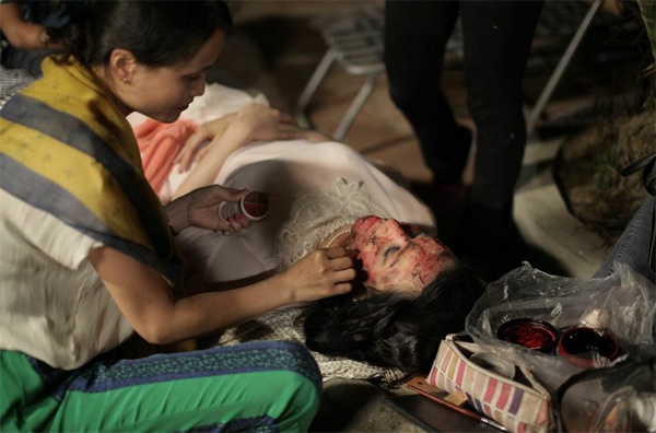 | Bí mật gương mặt cháy đen của Trang Nhung mà khán giả thấy xuất hiện chớp nhoáng vài giây trong trailer chính thức được hé lộ trong những tập phim hậu trường. |