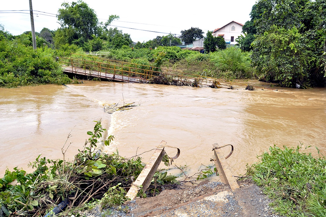 Rạng sáng 10/9, cầu Bà Cải (làm bằng gỗ và sắt, dài 50 m, rộng 1 m) bắc qua sông Buông (thuộc xã Phước Tân, TP Biên Hòa, Đồng Nai) bị gãy, chìm xuống sông trong mưa lớn.