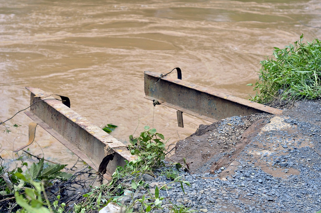 Cầu sập, nước dưới sông chảy xiết nên lực lượng chức năng phải cử người canh gác, đảm bảo an toàn.