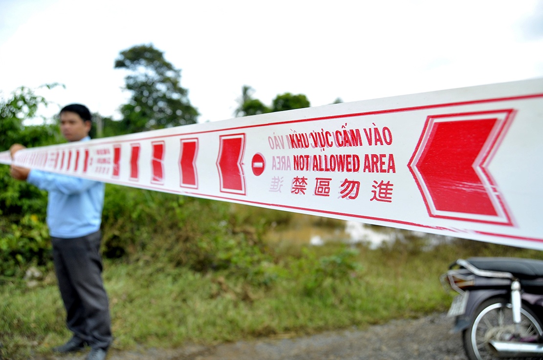 Biển cảnh báo được công an địa phương đặt ngay sau sự cố xảy ra.