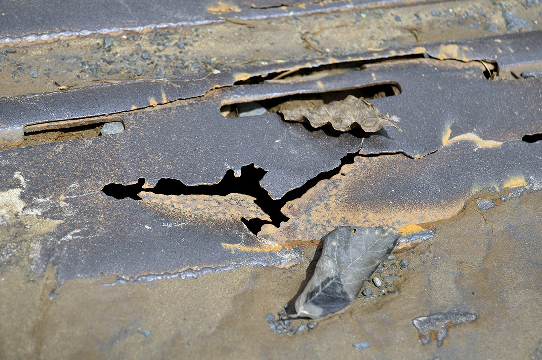 Tấm sắt ở mặt cầu bị mục, thủng lỗ chỗ.