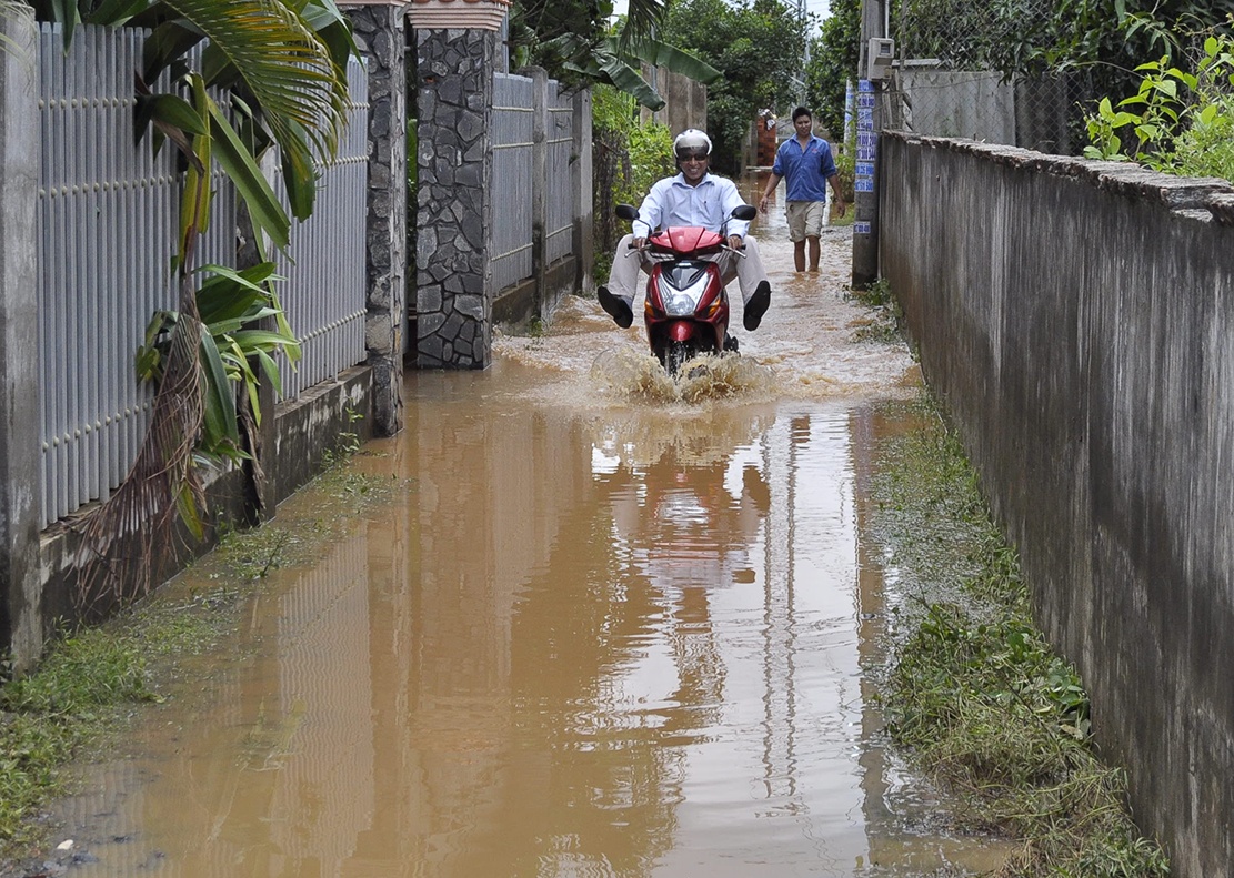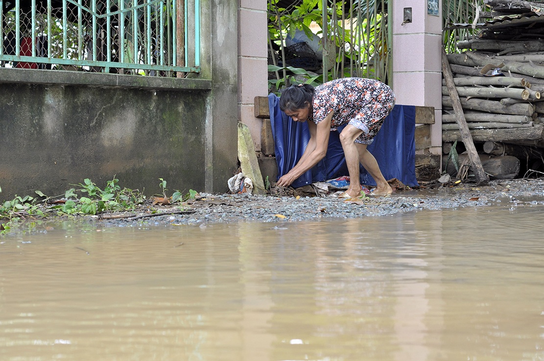 Khu dân cư này rất thấp, dễ bị ngập mỗi khi trời mưa. "Cầu sập, chúng tôi ra trung tâm xã bằng đường liên ấp quanh co. Tuy nhiên, từ ngày 9 đến sáng 11/9, các tuyến đường này bị nước mưa nhấn chìm ở độ sâu hơn 1 m khiến cả làng bị cô lập. Chúng tôi rất sợ nước đổ về lớn thì không có đường thoát thân", ông Hoàng Văn Khánh ái ngại.