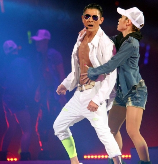 Tuy nhiên, không biết là cố tình hay vô ý mà có một tiết mục hơi phản cảm. Đó là tư thế "kỳ cục" giữa anh và bạn nhảy nữ khiến các khán giả nữ không khỏi đỏ mặt. Nhiều người cho biết tư thế này có thể sánh với tư thế "lịch sử phản cảm" mà Miley Cyrus đã trình diễn gây xôn xao dư luận vừa qua. Ngoài ra còn có những màn "gạ gẫm" của vũ công nữ lên ngực và cơ thể anh.