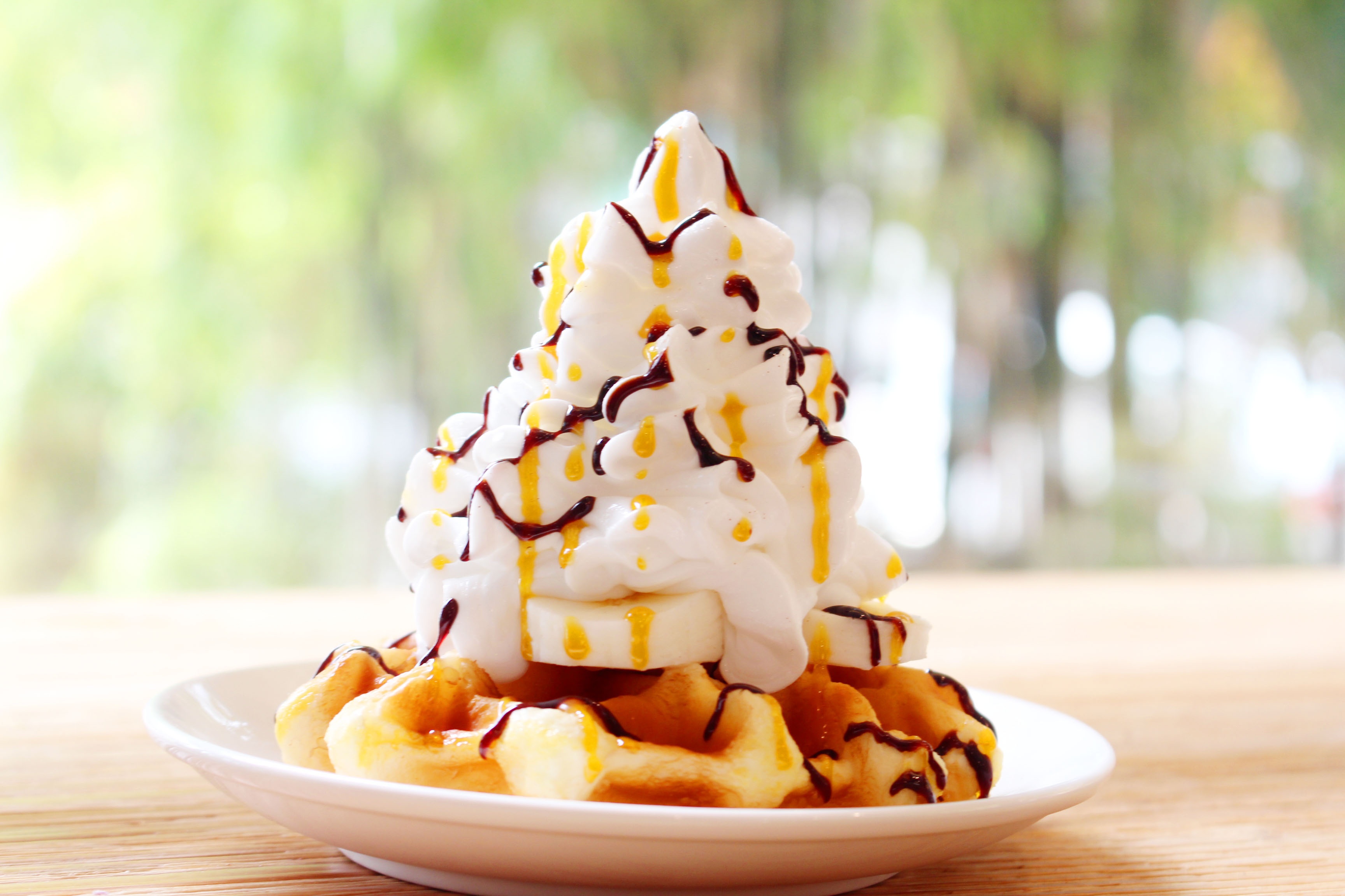 Hiện, tại cafe Bene có bán 6 biến tấu khác nhau của món bánh này là Caramel banana waffle (caramel và vị chuối); Bluberry Cream Chees waffle (hương việt quất phô mai); Tiramisu waffle (bánh tiramisu); Blueberry yogout waffle (việt quất sữa chua); Choco-nuts waffle (chocolate và các loại hạt ngũ cốc). |