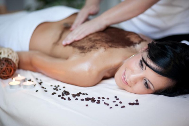 Trộn lẫn 1/2 chén cà phê xay, 1/2 chén đường cọ dừa, 1/4 chén dầu dừa và 1 muỗng cà phê quế trong một chiếc bát to và xoa bóp nhẹ nhàng toàn bộ cơ thể với hỗn hợp này trước khi rửa sạch bằng nước ấm.