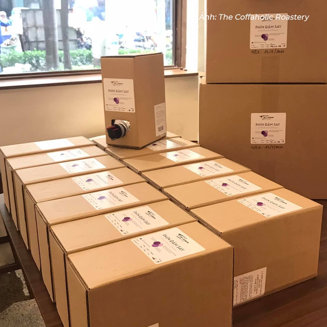 The Coffaholic Roastery được giới thiệu là nhà rang cà phê hoạt động từ năm 2017. Khi vô tình lướt qua hình ảnh, tôi đã ấn tượng với thiết kế hộp đựng cà phê pha sẵn 2 lít có vòi dẫn tiện lợi.