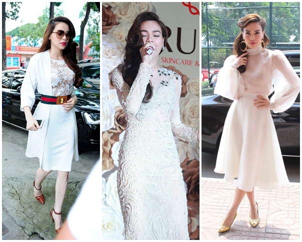 Gam màu trắng: Màu trắng cũng nằm trong list trang phục ưa thích của Hồ Ngọc Hà. So với tông màu đỏ nóng bỏng, bà mẹ một con sử dụng tông màu trong sáng gắn với hình ảnh lịch thiệp, nhã nhặn. Đây cũng là sắc màu dễ dàng tạo thiện cảm cho người đẹp Việt.