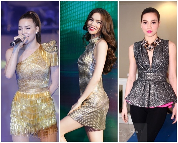 | Trang phục đính kim loại giúp Hồ Ngọc Hà trông quý phái và quyền lực. Chính vì thế, những bộ đầm ánh kim luôn được vận dụng khi người đẹp biểu diễn dưới ánh đèn sân khấu. |