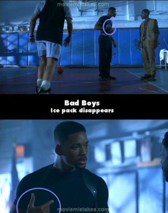 Trong cảnh rộng ở sân bóng rổ, Lowrey (Will Smith) cầm một túi đá đặt ở trước ngực. Tuy nhiên, ngay cảnh cận tiếp theo, túi đá biến mất.