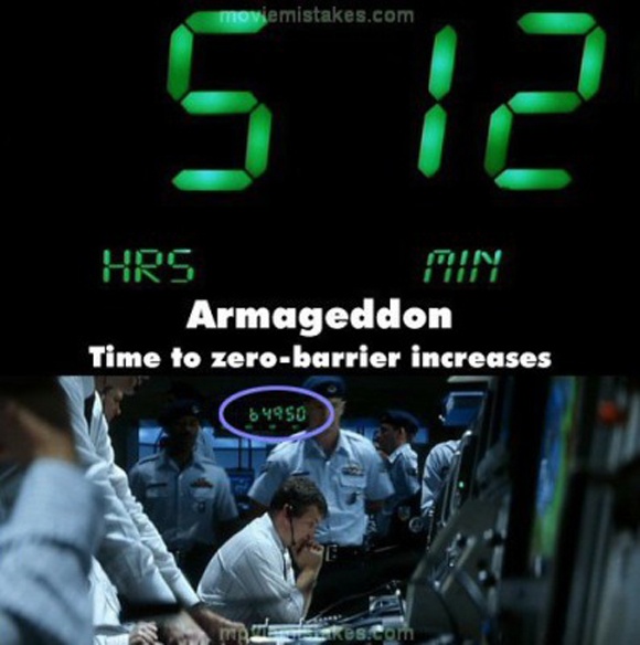 Khi Sharpe và Stamper tranh cãi về tiểu hành tinh, Truman nói về việc lấy lại chiếc đài. Khi anh ta nói vậy, màn hình hiển thị cận cảnh đồng hồ điện tử. Nhưng ngay sau đó, khán giả tinh mắt có thể thấy đồng hồ ở phía xa xa lại chỉ một con số hoàn toàn khác.