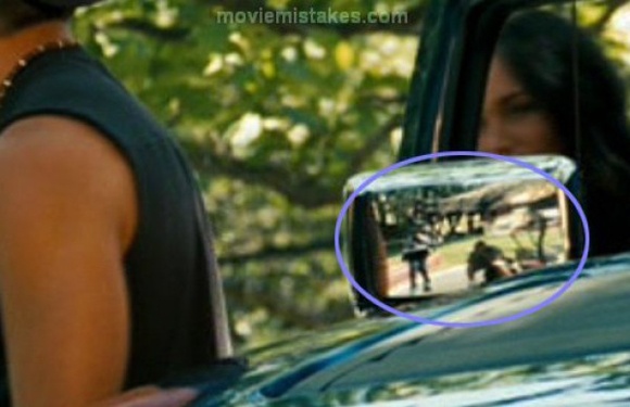 Khi Sam (Shia LaBeouf) kể về bạn trai của Mikaela, máy quay và nhóm quay phim xuất hiện trong gương chiếu hậu của chiếc xe.