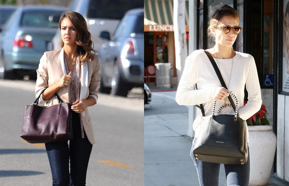 Túi tote: Kích thước rộng rãi, chiếc túi vừa đủ lớn để mang theo những gì nữ diễn viên cần. Kiểu túi này dường như cũng hợp với tất cả trang phục trong tủ quần áo của Jessica. |