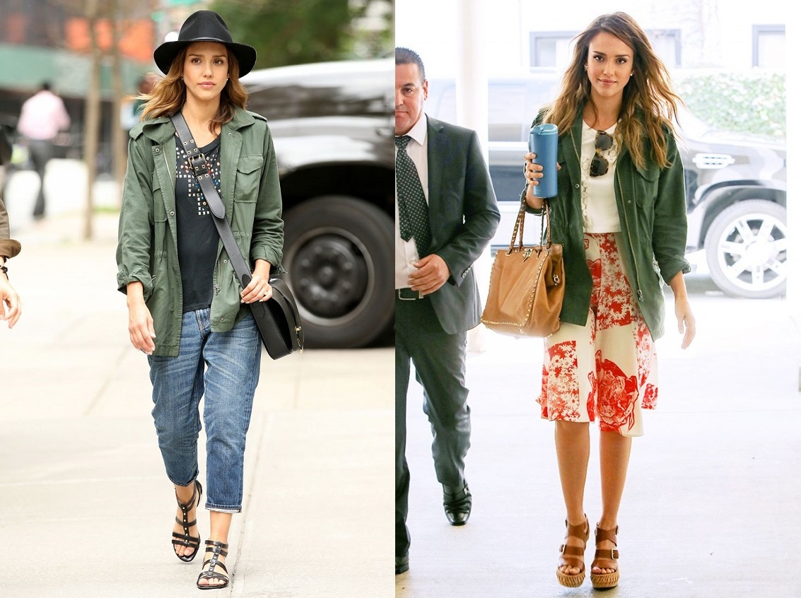 Áo jacket quân đội: "Đó là món đồ mang lại sự tự tin, thoải mái cho tôi", Jessica thú nhận cô có ít nhất 5 kiểu áo khoác như vậy. Mỗi lần diện mang đến cho cô một diện mạo khác nhờ cách phối linh hoạt, trẻ trung. |