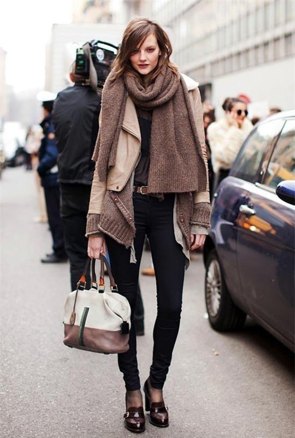 | Tăng độ ấm áp bằng những chiếc khăn len dày cộm nhưng không kém phần phong cách. |