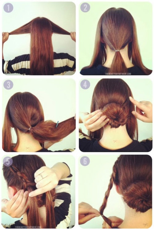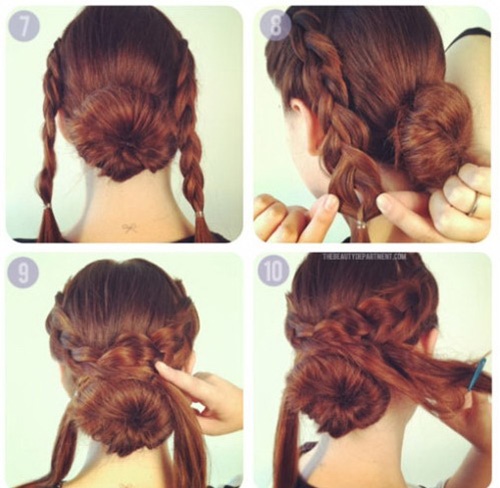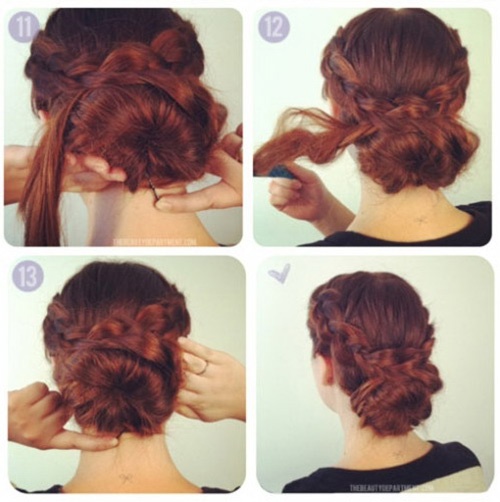 | Bạn hãy tết tóc vòng ra trước mặt như hình để tạo cảm giác như bạn là một nàng công chúa xinh xắn và đài các với chiếc vương miện đáng yêu làm từ tóc nhé. |