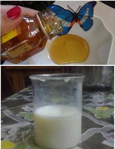 Pha thêm một ít mật ong vào sữa để tạo nên một hỗn hợp sền sệt dùng để đắp lên tóc. Để tăng thêm hiệu quả cho loại mặt nạ này, hãy nghiền thêm dâu tây hay chuối và đánh đều với dung dịch kể trên.