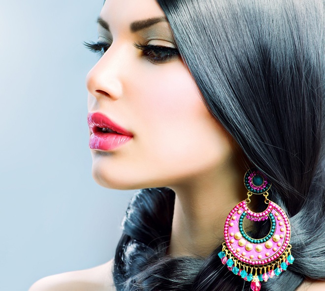 Nếu muốn mua hoa tai, vòng cổ, bạn cần lưu ý đến màu tóc để kiểu trang sức vừa sắm là phụ kiện tuyệt vời giúp tôn vinh tổng thể khuôn mặt. Lời khuyên là hãy chọn các gam màu tương phản tương đối giữa tóc và trang sức như đen - đỏ, nâu – xanh dương, đỏ - trắng… vì sự kết hợp trái chiều này sẽ cho bạn cả 2 lợi thế: vừa làm nổi bật món trang sức vừa giúp mái tóc của bạn thêm cuốn hút.