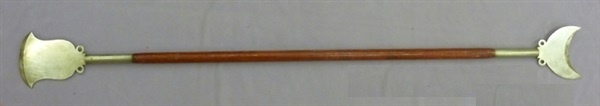 Đây là loại quyền trượng 2 đầu khác nhau: một đầu là một lưỡi dao cán mỏng có thiết kế phần lưỡi tròn như mặt trời (Nhật), đầu kia có hình vầng trăng khuyết (Nguyệt) nên có tên là Nhật Nguyệt Quyền Trượng. Đây là món binh khí do Lỗ Trí Thâm tự thuê người rèn, nặng tới 62 cân, gấp rưỡi cân nặng các binh khí thông thường khác. Hình dáng binh khí này rất giống với cây trượng của nhân vật Sa Ngộ Tĩnh trong Tây Du Ký.
