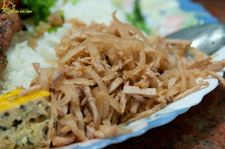 Cơm bì: Cũng ăn kèm cơm nấu từ gạo gãy, nhưng phần lớn thực khách chọn cơm bì phần lớn do yêu thích vị thơm ngon, giòn của một trong những món ăn lâu đời miền Nam. Ảnh: Gocamthuc. |