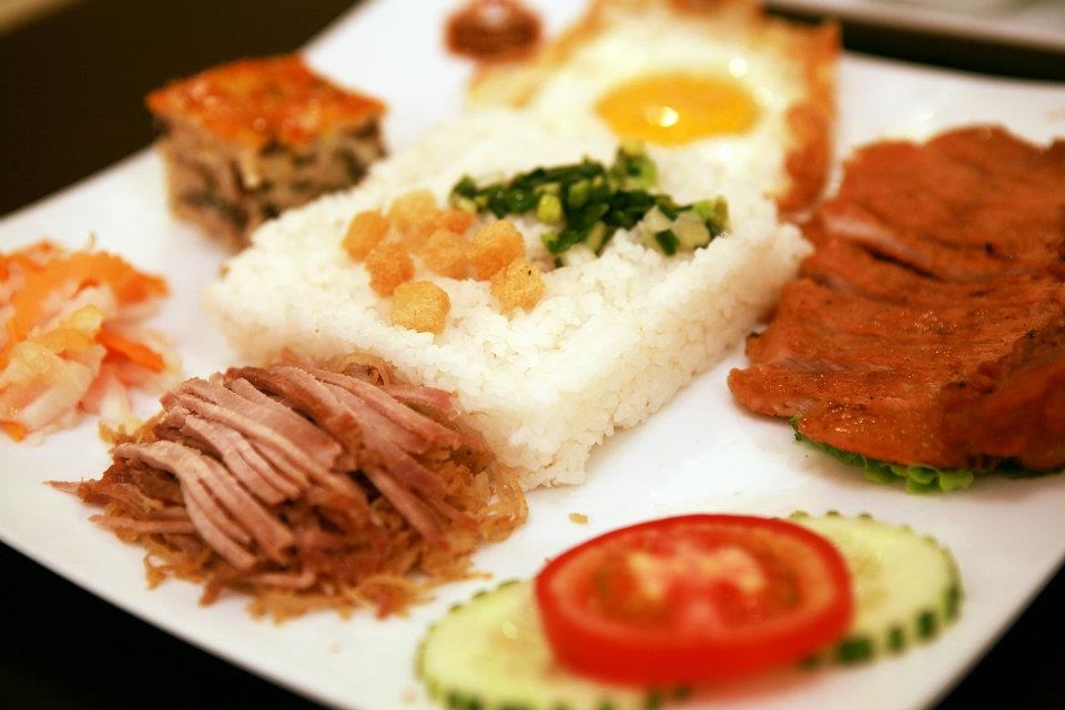 Cơm tấm là món ăn đặc trưng của Sài Gòn. Cơm được nấu từ gạo gãy (tấm), ăn kèm sườn nướng, bì, chả, nước mắm chua ngọt. Bạn có thể tìm thấy cơm tấm tại các con đường lớn nhỏ vào mỗi sáng, tối. Ảnh: Cơm tấm Cali. |