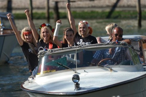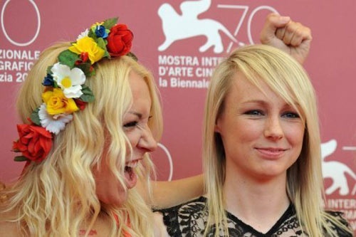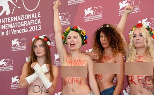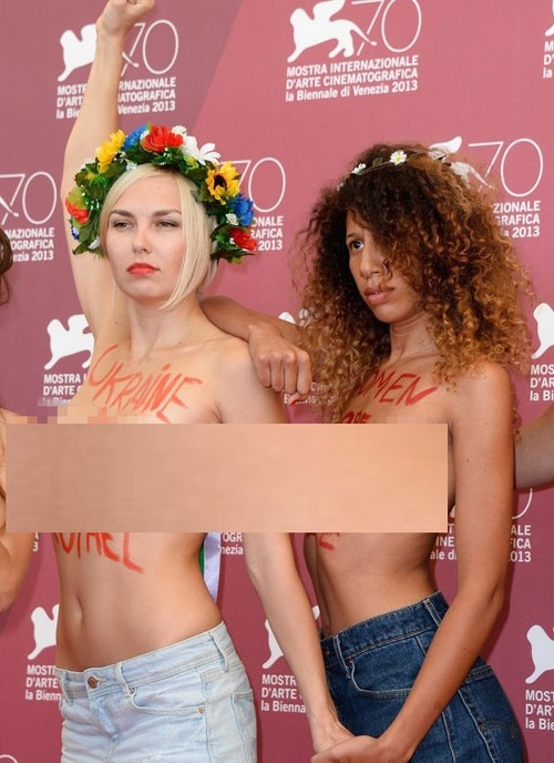 | Những sao nữ xinh đẹp - các nhà hoạt động nữ quyền Femen tự tin khoe dáng trước ống kính buổi chụp hình Photocall ở Venice 70. |