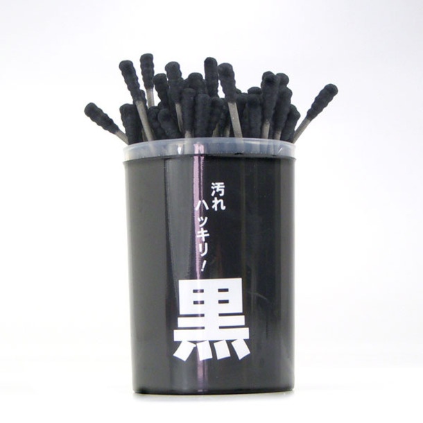 | Trong túi dụng cụ của các chuyên gia trang điểm trong hậu trường của tuần lễ thời trang không bao giờ thiếu tăm bông của Nhật. Không chỉ bền, dễ dùng khi lau viền môi và làm đường chì kẻ mắt sắc nét hơn, tăm bông Nhật còn có nhiều màu sắc và hình dáng đầu bông đa dạng, chẳng hạn như màu đen và có khớp như trong ảnh. |
