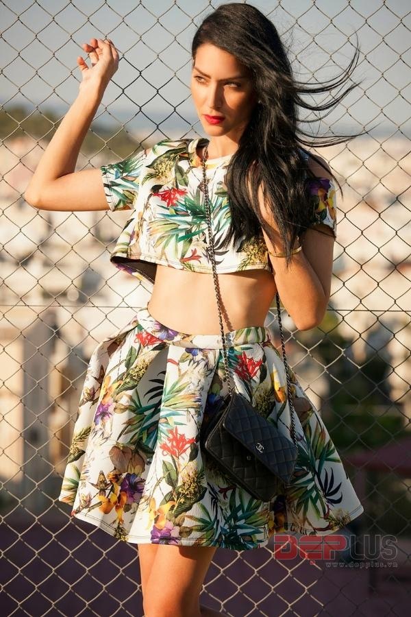 Set đồ mang phong cách matchy matchy với họa tiết hoa lá nhiệt đới, một trong những xu hướng hot nhất hè này sẽ giúp bạn tỏa sáng trong ngày hè. Áo crop top kết hợp chân váy ngắn khoe eo thon và chân dài quyến rũ sẽ là lựa chọn tuyệt với cho cô nàng tự tin và cá tính.