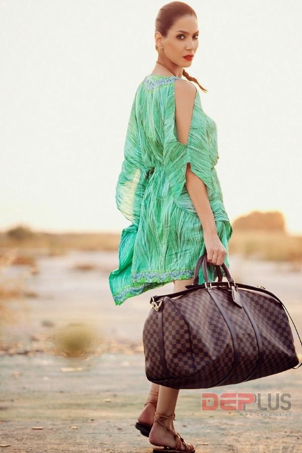 Set đồ thích hợp với kỳ nghỉ trên biển hay một buổi picnic cuối tuần với váy xẻ cổ V cùng những khoảng cut out sexy, gam màu xanh tạo cảm giác dịu mát và phóng khoáng. Một đôi sandals đế bệt là lựa chọn hoàn hảo cho set đồ này.