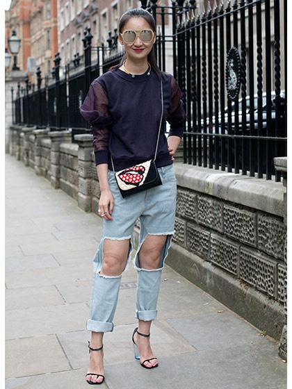 Nói một cách dễ hiểu hơn là hãy từ bỏ những chiếc quần jeans rách kiểu "sỗ sàng" như cô gái trong hình. Chúng từng khiến chị em mê mẩn, nhưng đó đã là chuyện của quá khứ. Năm nay, jeans rách vẫn đang rất hot, nhưng bạn không nên "quá đà".