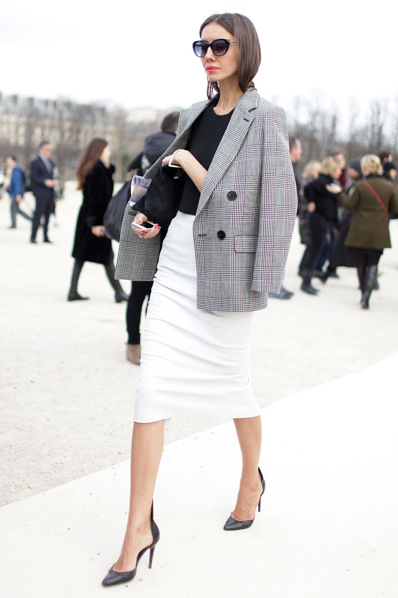 Để những chiếc váy bút chì không chỉ đi làm, bạn có thể kết hợp váy bút chì theo phong cách sang trọng hơn cùng áo sơ mi đi cùng áo khoác, có thể đeo một chiếc vòng ngọc trai tạo đường nét cổ điển đến những bữa tiệc.