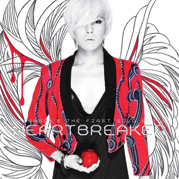 | Heartbreaker của G-Dragon là một trong những bìa album được đánh giá vô cùng độc đáo khi mang đầy tính nghệ thuật. Không có những hình ảnh điên rồ hay hiệu ứng đặc biệt nào, bìa album chỉ là hình ảnh một anh chàng tay cầm quả táo với đôi cánh đầy máu sau lưng. |