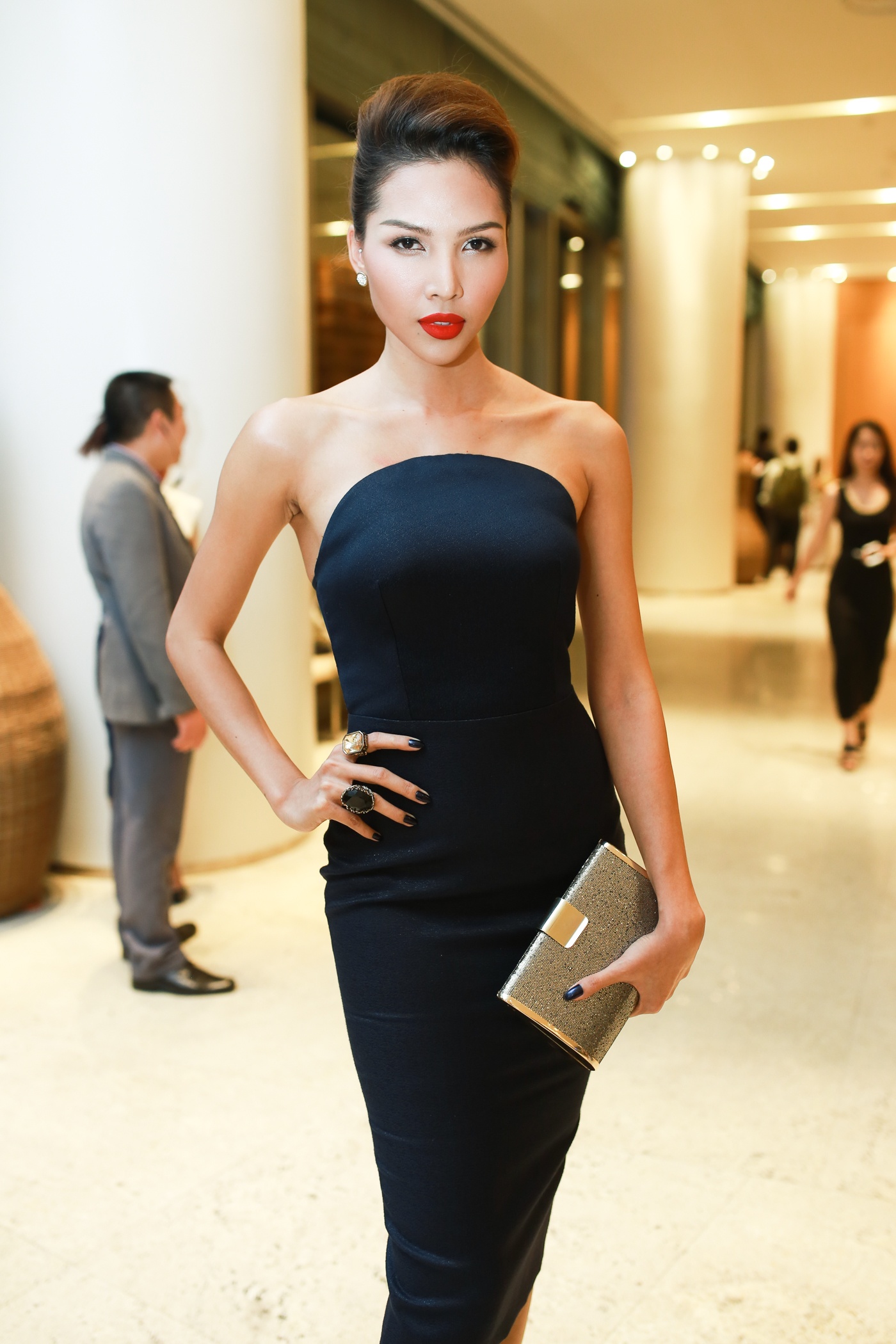 | Á hậu Tú Anh nổi bật tại một đêm tiệc tại Sài thành nhờ trang phục của NTK Huy Trần. Thiết kế tông màu trầm được nhấn nhá họa tiết đồ họa tinh tế giúp người mặc trông sinh động hơn hẳn. Tông trang điểm và mái tóc xoăn gợn sóng góp phần tạo nên hình ảnh hoàn hảo. |