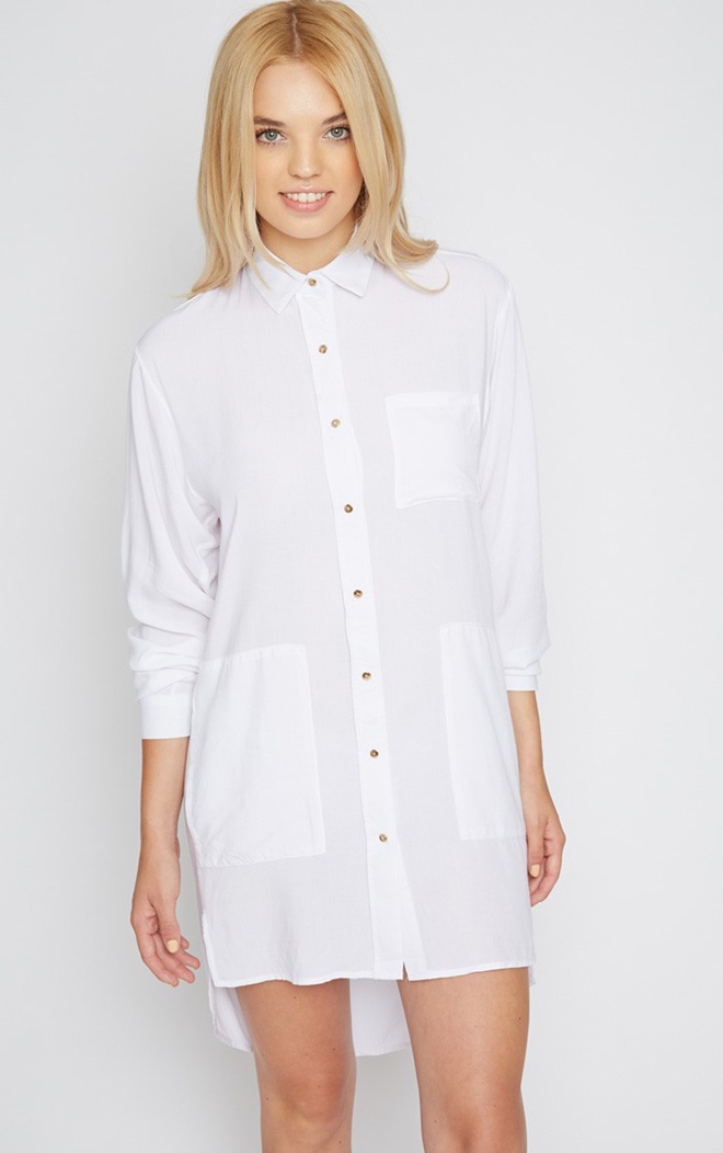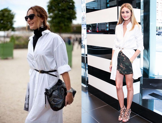 | 3. Dùng làm áo khoác ngoài. Thêm một cách F5 áo sơ mi trắng over-size rất đáng tham khảo. Chỉ cần khoác áo sơ mi trắng bên ngoài set đồ dạo phố, cài thêm thắt lưng điệu đà. Thế là đủ để bạn trở thành quý cô sành điệu. |