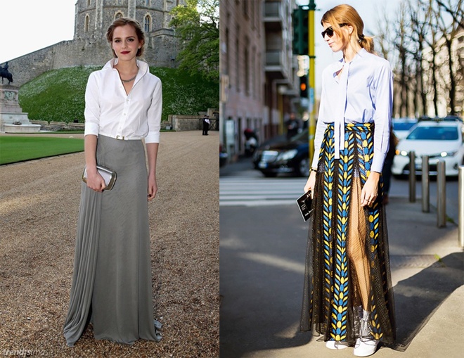 | 5. Kết hợp cùng chân váy maxi. Nếu đã có 2 kiểu trang phục này trong tủ đồ, đừng ngại kết hợp chúng với nhau. Bởi chắc chắn bạn sẽ ngạc nhiên khi thấy hiệu quả tạo phong cách đẳng cấp đáng trải nghiệm từ cách mix, match độc đáo này. |