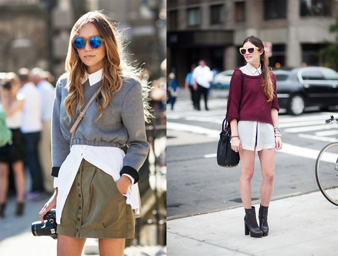 | 2. Biến tấu với mốt không quần. Một chiếc áo sơ mi trắng phom rộng mặc ngoài quần shorts hay váy ngắn giúp set đồ street style của bạn cá tính hơn hẳn. |