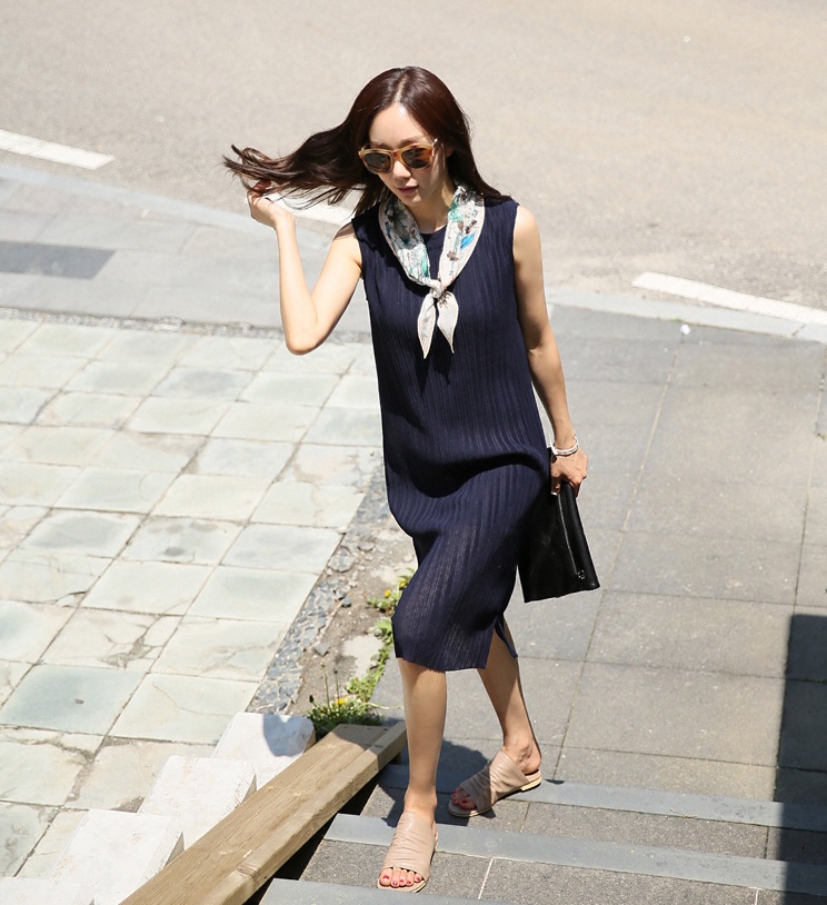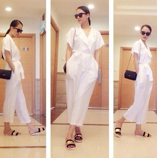 | Đôi dép thường xuyên được cô sử dụng và mix với nhiều kiểu trang phục. |